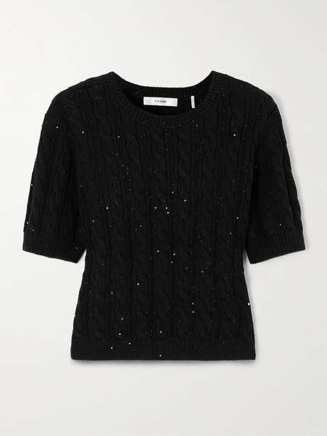 FRAME's sweater is flecked with tiny light-catching sequins that add a touch of glamour. It's cable-knitted from soft cotton-blend for a relaxed fit. Wear it solo with tailored pants or layer it over a collared shirt.