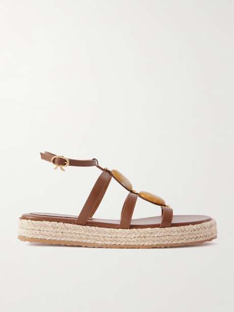 Gianvito Rossi's sandals are modeled on classic gladiator styles. They're made from leather and punctuated with polished stones and gold-tone hardware. The 20mm raffia-wrapped soles offer perfect lift.