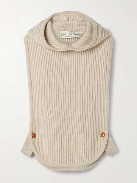 God's True Cashmere's tank has tabs at the sides that fasten with carnelian buttons - the stone is believed to bring courage and vitality. It's rib-knitted from soft cashmere and topped with a cozy hood.