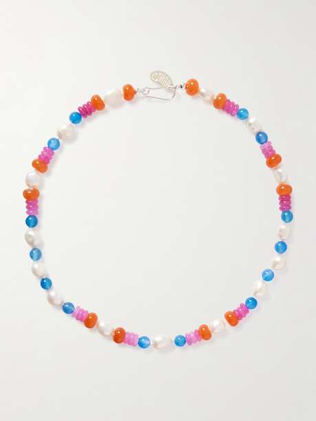 Gohar World's 'Turkish Delight' necklace channels the brand's playful spirit and love of traditional craft. Handmade in New York City, it's strung with pearls and colorful agate and quartz beads on silk cord. It'll look beautiful solo or with the matching earrings.