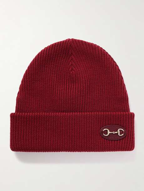 Gucci's beanie is embellished with a gold-tone horsebit - an iconic detail that's instantly recognizable. It's rib-knitted for a snug fit from soft certified wool and has an appliquéd leather patch on the folded brim.