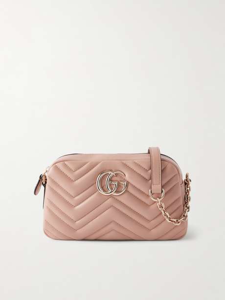 The interlocking 'GG' hardware on Gucci's bag is inspired by a '70s belt buckle from the brand's archives. This quilted style is made from leather and has a chain-trimmed strap that you can carry cross-body. The faille-lined interior is spacious enough to carry a compact, wallet and keys.