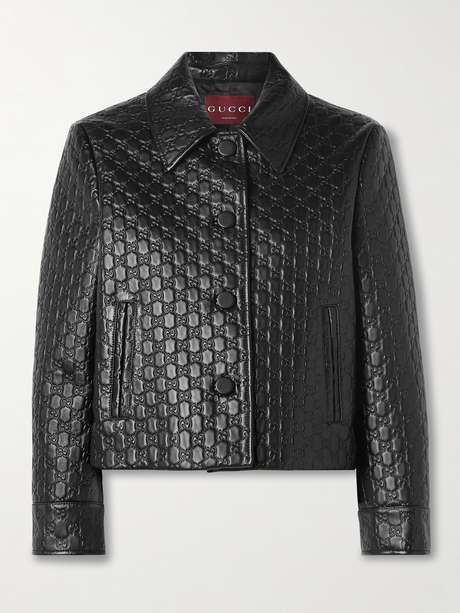 Gucci's jacket feels reminiscent of the brand's 'GG Emblem' bags, which feature the same logo debossing. Cut from supple black leather, it has a boxy, slightly cropped shape and a full lining for smooth layering.