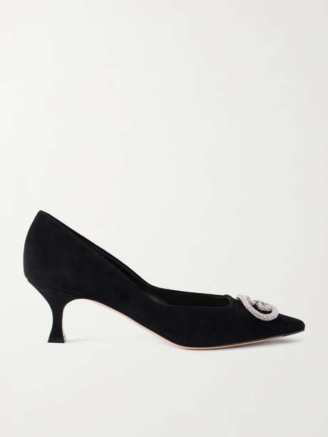 Gucci's pumps add a touch of sparkle to your step. They have been crafted in Italy from supple suede and have pointed toes topped crystal-encrusted versions of the 'GG' motif. 60mm heels offer plenty of lift.