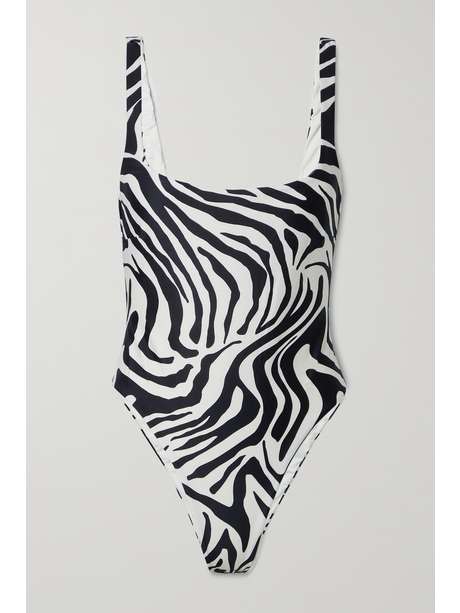 Haight is known for minimal silhouettes that celebrate your form. The 'Thidu' swimsuit is patterned with a playful zebra print and has a squared neckline framed by comfortable wide straps. The high cut makes your legs look longer.