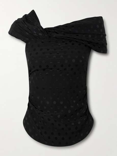 Isabel Marant's 'Esen' top looks just as stylish with jeans as it does with a skirt. It's cut from stretch-silk jacquard patterned with polka-dots and elegantly bares one shoulder. Notice how beautifully it drapes.