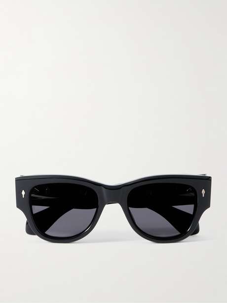 Jacques Marie Mage's 'Chelsea' sunglasses have sculpted frames that recall vintage Panto styles. Handcrafted in Japan in a limited batch of 450, they're made from glossy acetate and set with anti-reflective lenses. The oversized temples are tipped with signature arrowhead pins and a trio of stars on the arms.