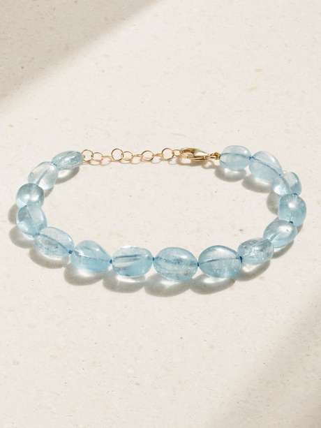 JIA JIA's 'Arizona Candy' bracelet is strung with aquamarine, which is said to promote good luck and happiness. It's hand-knotted and has an adjustable gold chain to ensure it'll fit comfortably on any size wrist. Wear yours solo or stacked with other beaded styles.