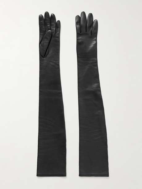 KHAITE's 'Remo' gloves were styled with a variety of looks on the Fall '25 runway, adding a touch of effortless glamour to each one. This pair is made from supple leather that extends all the way up the arm.