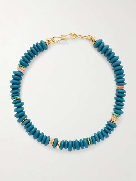 Lizzie Fortunato's 'Laguna' necklace highlights Ashanti beads sourced in Ghana using millennia-old techniques. Made from gold-plated brass, it mixes glass and gold-plated rondelle beads for subtle contrast.