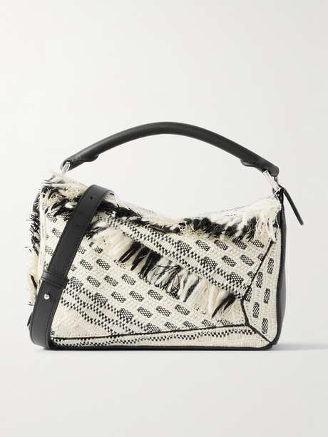 This version of Loewe's 'Puzzle' bag is made from supple leather and fringed jacquard - the design is inspired by Anni Albers' tapestry art. It can be carried in a few different ways and has enough space inside for your phone, cardholder and keys.