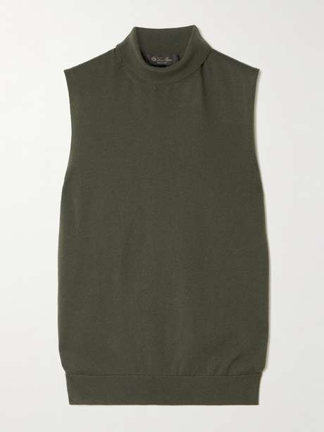 Loro Piana's 'Piuma' 18-gauge tank is made from cashmere selected for its "rarity, excellence, and ultimate quality." Knitted for a lightweight handle, it has a folded turtleneck and a ribbed hem that defines the shape.