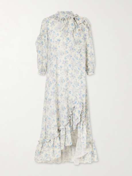 MAISON MAYLE Batacalla scarf-detailed ruffled floral-print silk-crepe de chine midi dress