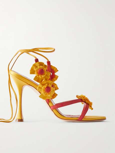 EXCLUSIVE AT NET-A-PORTER. Part of Manolo Blahnik's hotly anticipated 'Marie Antoinette' capsule, these enchanting 'Palissot' sandals are modelled on the original styles the designer created for Sofia Coppola's 2006 biopic. They're made from satin with grosgrain straps and feature handmade floral rosettes inspired by the French queen's furniture. Adjust the leather ties to your ideal fit.