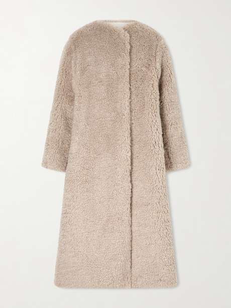 When the temperature drops, cocoon yourself in Maria McManus' 'Wrap' coat. It has a fuzzy fleece exterior and is design to drape like a robe and layer elegantly over knitwear and tailoring. The concealed closure creates a streamlined finish.