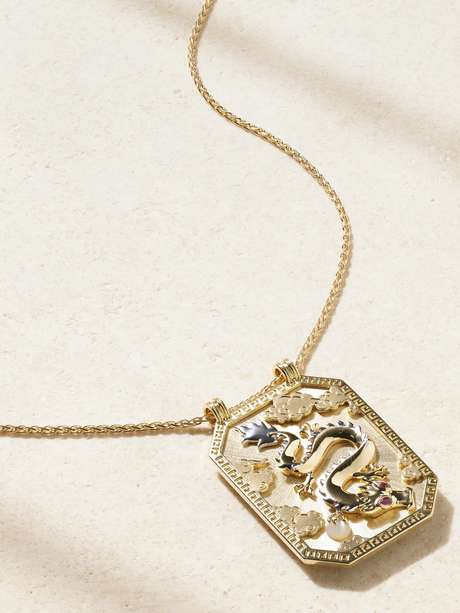 Marie Lichtenberg's signature 'Scapular' necklaces are rooted in symbolism, which makes each one feel really special. Strung on a 'Spiga' chain, this version is handmade from 18-karat gold and features a dragon that has rubies for eyes and holds a lustrous pearl. A symbol of good luck, strength and prosperity, it's perfect for days when you need a little extra on your side.
