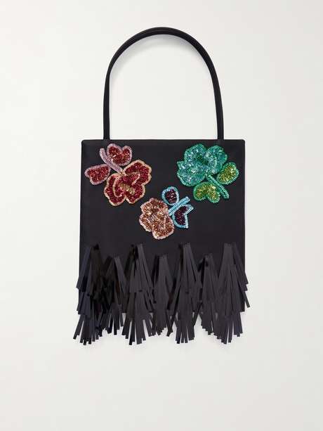 Marni brings its signature playfulness to this tote bag. Made from satin, it’s embellished with floral motifs and finished with fringed detailing along the base. It fits your phone, wallet and keys.