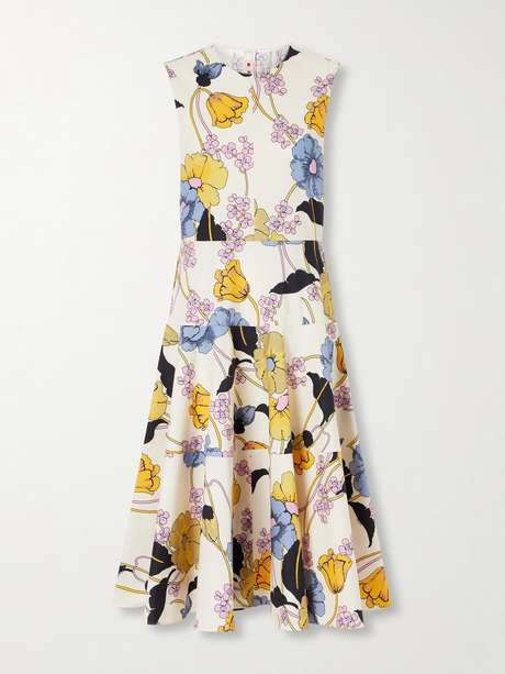 Marni's midi dress is patterned with a vibrant 'Melodia' floral print that's inspired by the label's archives. It's made from panels of breathable cotton-poplin and is softly pleated through the skirt.