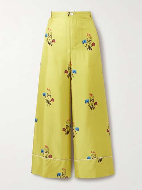 Colorful florals have become something of a signature in Marni's latest collections – the blooms on these trousers feel all the more eye-catching against the mustard-yellow background. Made in Italy, they're cut from glossy silk-twill with roomy wide legs and a high waist.