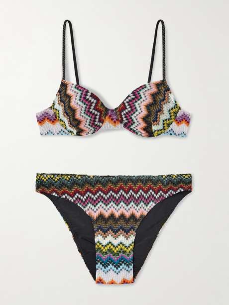 Missoni Mare's bikini is flecked with metallic threads that glimmer beautifully in the sun. It's crocheted with signature zigzag stripes and has supportive underwired cups.