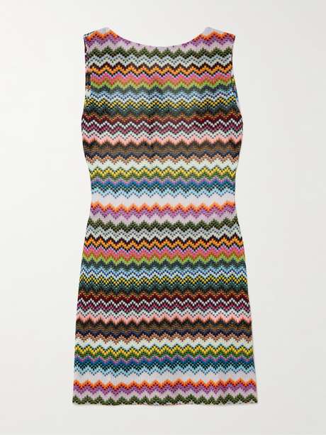 Missoni Mare's mini dress is the perfect vacation staple. Made using the label's signature crochet-knit, it's flecked with metallic threads and has an open back.