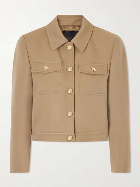 Nili Lotan's 'Edna' jacket sharpens classic utility through a cropped silhouette. Cut from structured wool-gabardine with a crisp collar and snap-fastened pockets, it balances precision with ease—designed to sit close to the body without feeling rigid.