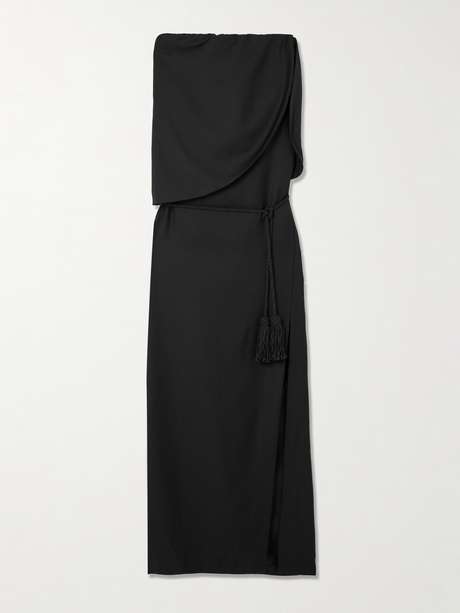 Australian label Posse describes its design ethos as "an ode to enduring style". Made from wool-twill, this 'Elspeth' maxi dress has a draped, strapless neckline and falls to an elegant pencil skirt. Use the tasseled belt to cinch in the waist.