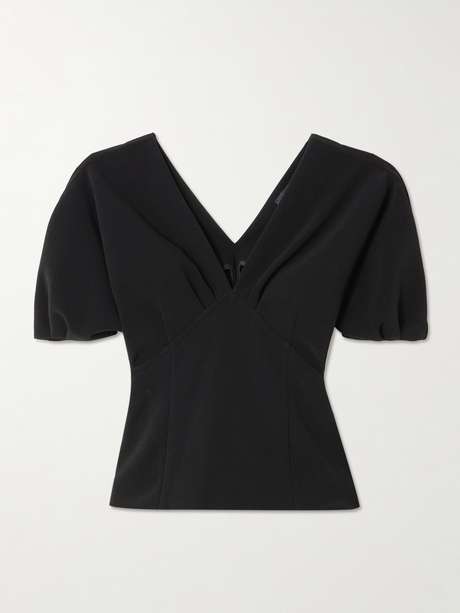 Proenza Schouler's 'Darena' blouse is cut from stretch-crepe to closely hug your waist. It has a V-neckline that's mirrored at the back and gathered sleeves that hit an elbow length. Wear yours with tailored pants or an A-line skirt.