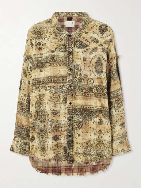 R13 Frayed printed cotton shirt