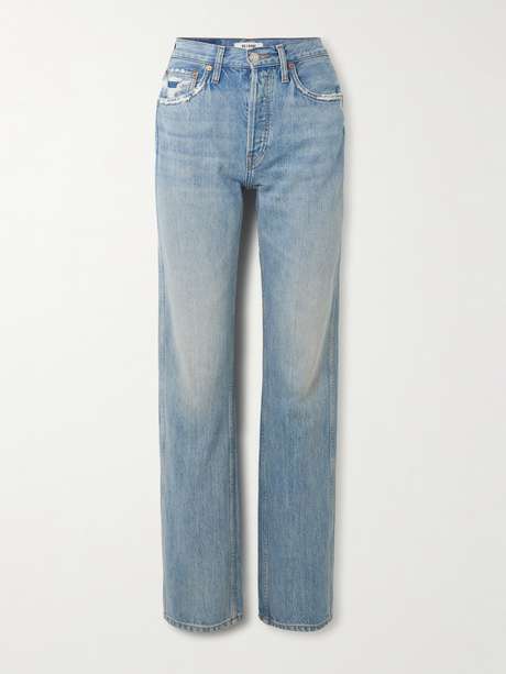 RE/DONE's jeans look like a pair you've lived in for years. Cut from faded denim for a high-rise, they have minor distressing on the front pockets and fall to relaxed, straight legs.