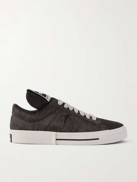 RICK OWENS + Converse ONESTR leather-trimmed cow hair sneakers
