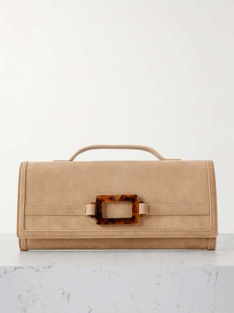 Designed in the 1960s, Roger Vivier's iconic buckle remains a timeless symbol of the house’s refined craftsmanship – the version on this 'Belle Vivier' clutch is reimagined in tortoiseshell acetate. It's made from velvety suede in a slim shape and has a canvas-lined interior with a zipped pocket and enough space for your phone, cards and lipstick.