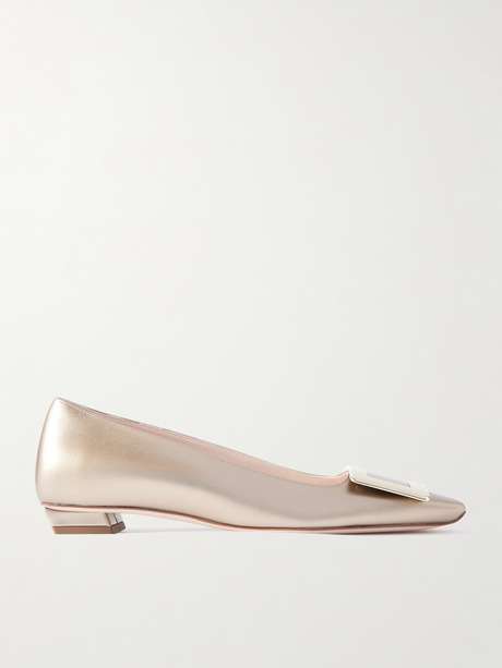 Roger Vivier's original 'Belle Vivier' silhouette debuted in 1965 and has remained virtually unchanged ever since - it's why the design feels so elegant. Made from gold leather, these ballet flats are topped with signature buckles at the square toes and set on slanted 25mm heels.