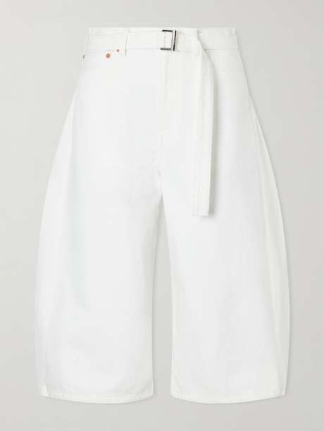 Sacai's signature approach to proportion gives these jeans a distinctly modern feel. Cut from denim, they're shaped in a wide-leg silhouette with cropped hems and finished with an integrated belt that defines your waist. Wear yours with a fitted tank or shirt to let the shape take focus.
