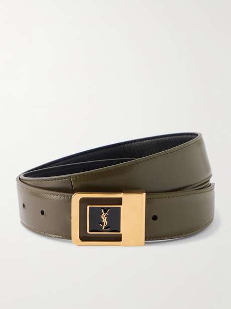 SAINT LAURENT's belt is centered with the gold-tone buckle featuring the instantly recognizable 'YSL' logo on a glossy enamel backdrop. It's made from leather and has a slim shape that'll thread easily through the loops of jeans or tailoring.