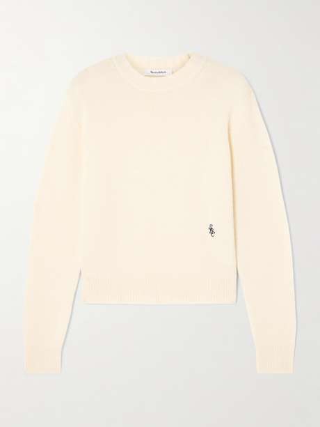 SPORTY & RICH SRC cropped embroidered cashmere and wool-blend sweater