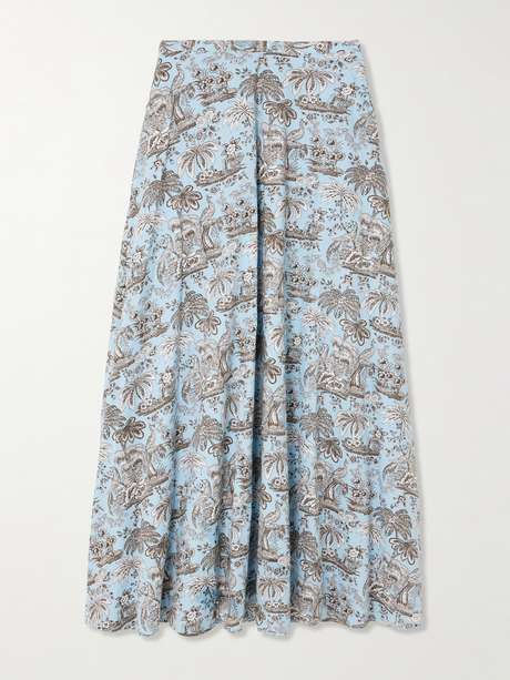 STAUD's 'Axel' skirt is gathered to create its romantic, full silhouette. The midi style is made from stretch-cotton printed with pretty florals – zoom in to spot majestic peacock motifs, and other wildlife, too.