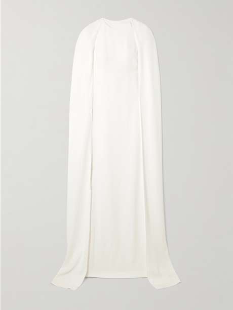 EXCLUSIVE AT NET-A-PORTER. Our exclusive evening capsule with Stella McCartney brings back iconic styles from the archives in fresh colorways. this gown is cut from stretch-cady to hug your curves and overlaid with a dramatic sweeping cape. Wear yours with diamond earrings and a plush velvet bag.