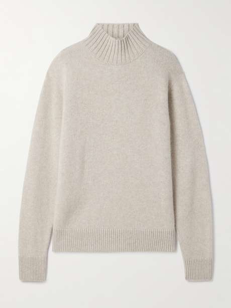 The Elder Statesman's sweater has been knitted from cashmere in a classic beige shade. Designed for a loose fit, it has cozy ribbed trims and a chic turtleneck. Wear yours with anything from neutral tailoring to the label's colorful track pants.