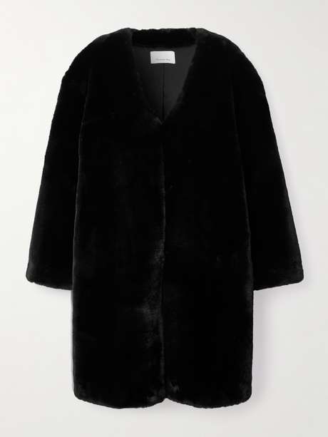 The Frankie Shop's 'Matera' coat has a collarless neckline, which feels so sophisticated. Made from soft plush fabric, it has an oversized shape that hits just below the knee. Wear yours with eveningwear or jeans and a sweater.