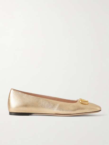 VALENTINO GARAVANI VLogo embellished metallic leather ballet flats