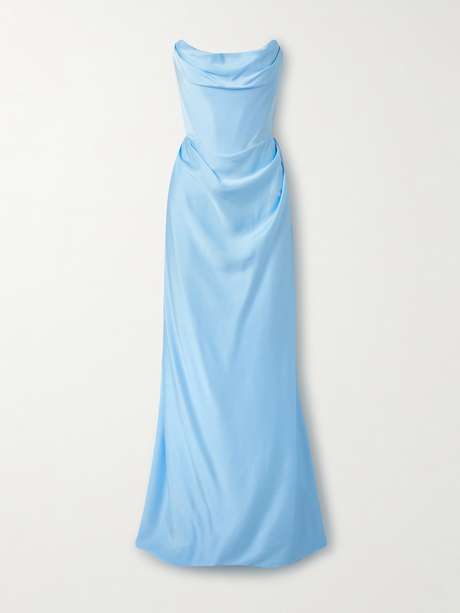 EXCLUSIVE AT NET-A-PORTER. Vivienne Westwood's 'Galaxy' gown commands attention. It's made from lustrous satin-crepe and is gently gathered along the strapless neckline and waist, which draws the eye inward.