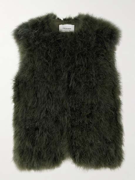 Yves Salomon's vest will step up any casual or après ski outfit. It has been made in France from wispy dark-green feathers and has a boxy, cropped shape. Wear yours over turtlenecks, tees and dresses.