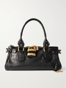 Clockwise from top left: bag charm, Julietta; jacket, Saint Laurent; scarf, Gucci; snake-effect shoulder bag, Alaïa; cardigan, Khaite; ballet flats, Gucci; black tote, Chloé; sunglasses, Prada Eyewear; eau du parfum, Loewe Perfumes; cardholder, Saint Laurent; sneakers, Dries Van Noten