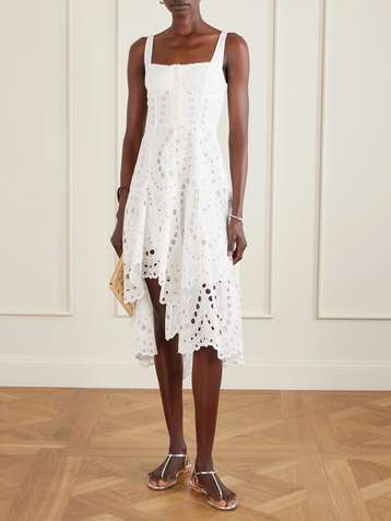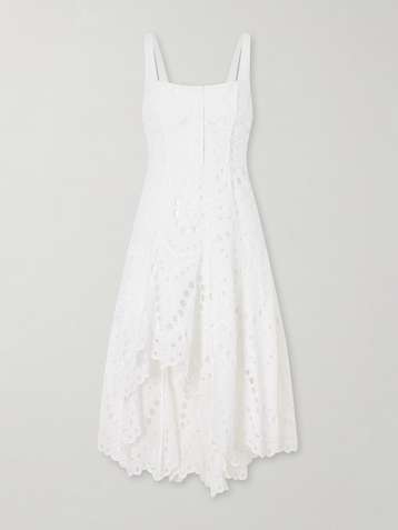 Ayla asymmetric scalloped broderie anglaise cotton-blend midi dress