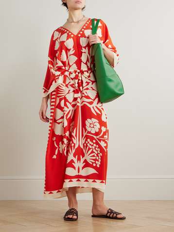 Holi belted printed silk crepe de chine coverup