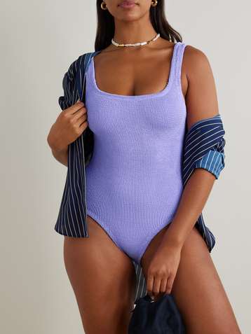 Originally established in the ‘80s, Hunza G became famous for a cutout mini dress Julia Roberts wore in Pretty Woman. Relaunched 30 years later under Creative Director Georgiana Huddart, this London-based brand makes swimsuits and bikinis from a sculpting seersucker fabric that’s a collection signature.