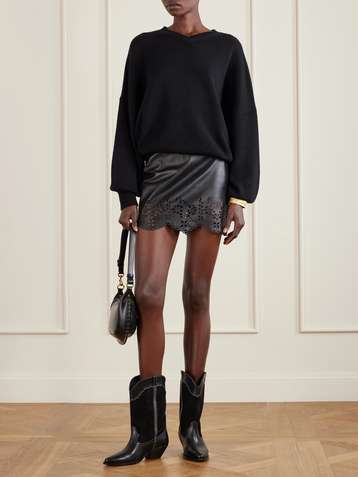 Natea laser-cut leather mini skirt
