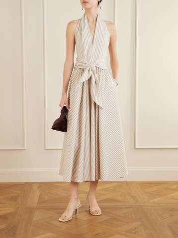 Knotted cotton-poplin midi dress