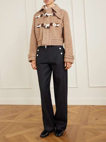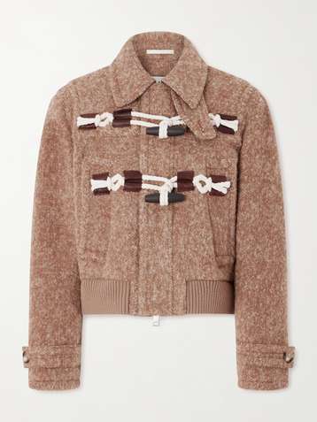 Embroidered cable-knit wool and cashmere-blend bomber jacket